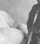 Perhaps after the picture was taken the wall portion of the image was cleaned up digitally -- to make the figure of the woman stand out more dramatically. Then, in an expression of digital whimsy, the pixels of the original light area to the left of the figure were replaced by pixels of the color of the upper part of the wall.
